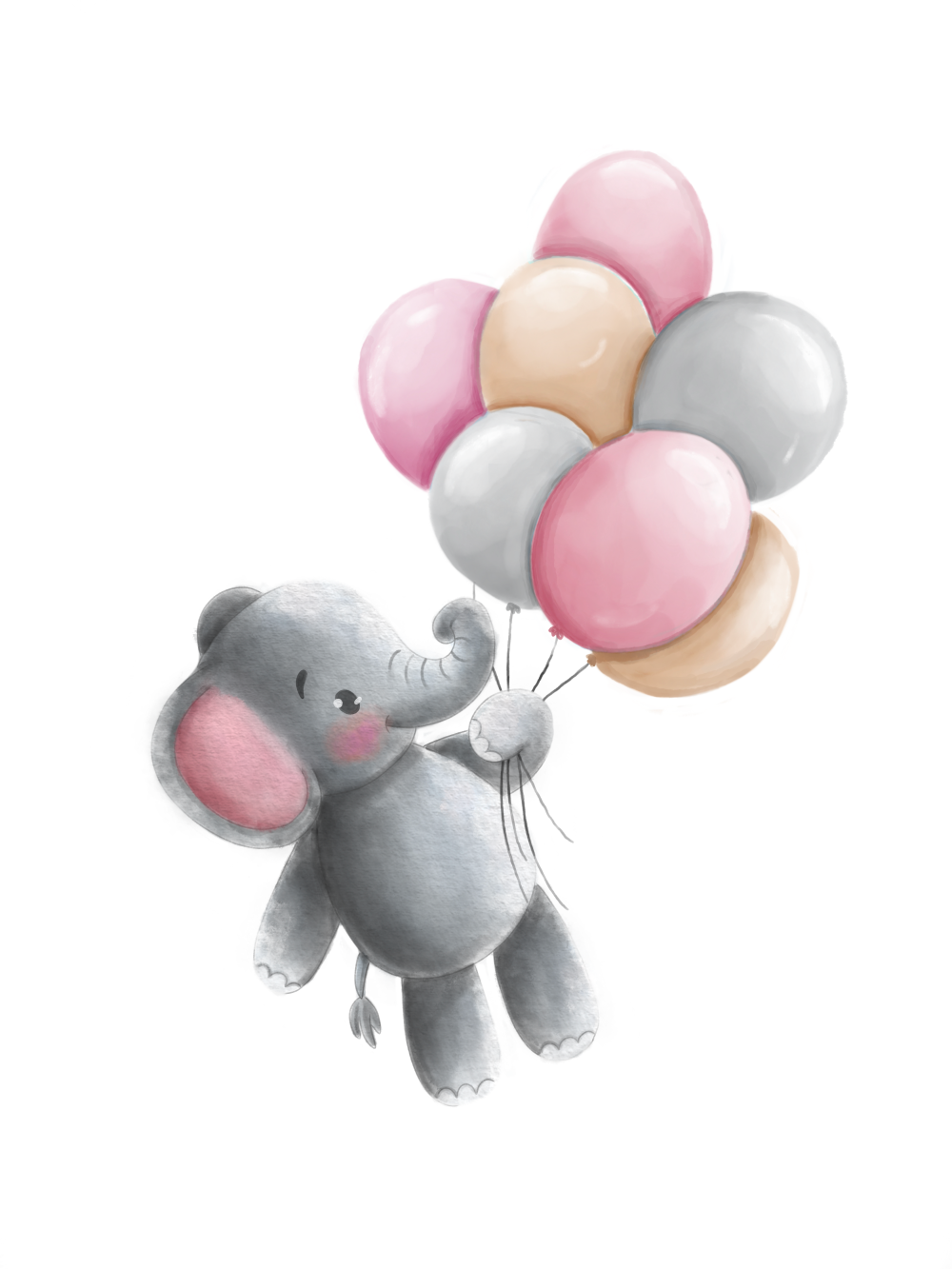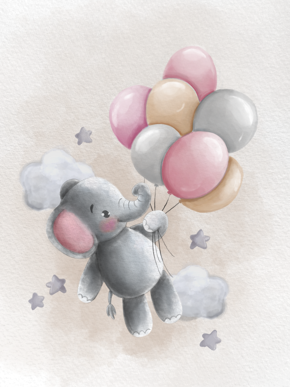 Originální obraz nebo plakát do dětského pokoje, to je roztomilý slon s balónky v různých barvách 🧸